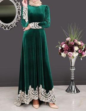 Kadife Tesettür Abiye,Tesettür Pazarı Kadife elbiseler,Günlük Kadife Elbise Modelleri,Zümrüt Yeşili Kadife Elbise